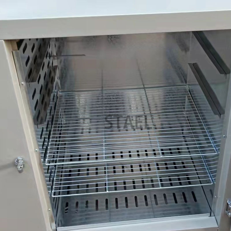 Tørringsboksen er lavet af tynd stålplade, boksen har et studie til at placere testen, testrummet har en partition, testen kan placeres på den til tørring, hvis testen er stor, kan du fjerne partitionen, studiet og kasseskallen har en betydelig tykkelse af isoleringslaget med studiet.