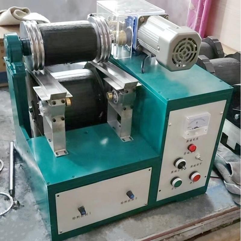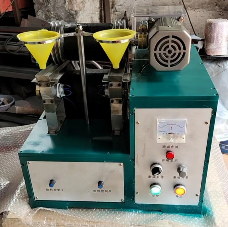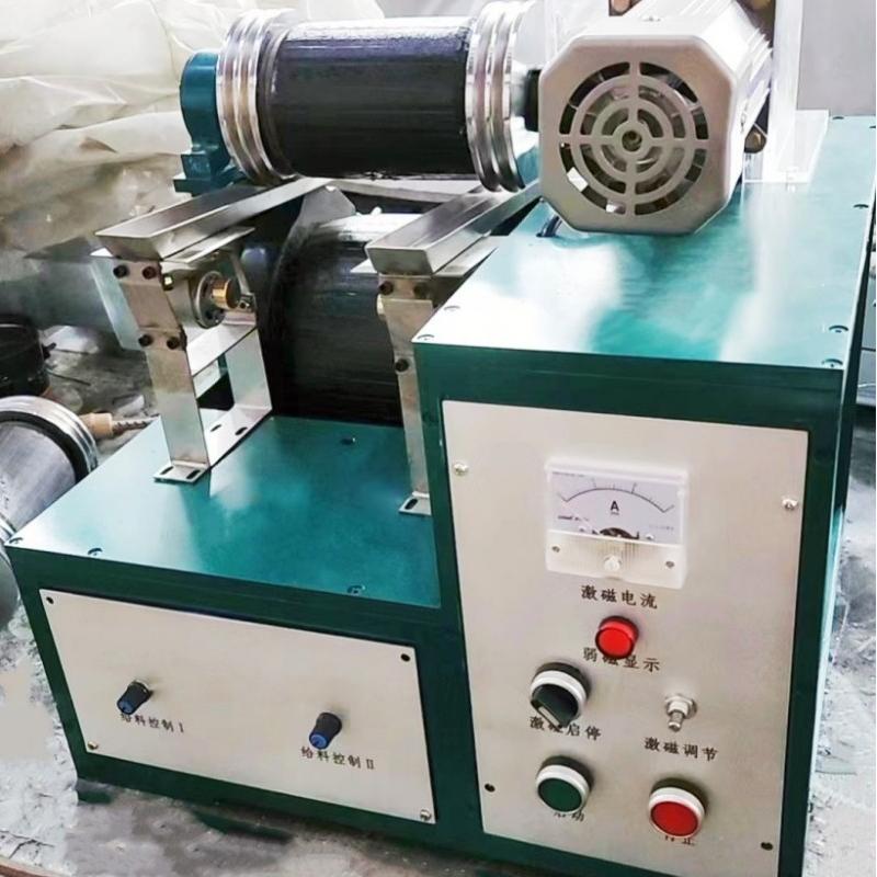 1. excitationssystem: Sammensat af fast magnetisk pol, rullehastighedsmagnetisk pol og excitationsvikling og excitation DC -strømforsyning installeret på både, er de øvre og nedre magnetiske poler arrangeret parallelt. Den lukkede magnetiske sløjfe er dannet af to ruller med en diameter på 120 mm og den nedre flade magnetiske pol. De to maksimale arbejdsafstande kan justeres ved at øge eller reducere bagpladen. Ved at justere spændingen på spændingsregulatoren, kan DC -strømmen leveret af siliciumelementet til den faste excitationsgruppe og den roterende magnetiske pole -excitation, der er leveret af børsten, øges glat fra nul til beløbet til den nominelle værdi 2 i henhold til det hastighed, for at tilpasse sig valg af forskellige mineraler, kan det magnetiske feltstyrkeområde af maskinen være opdelt i et stærkt magnetisk felt og svagt felt Feltudvælgelseskontakt på panelet. Når separationsmagnetisk afstand er 4 mm, er valg af magnetfeltvalg indstillet til positionen "stærke magnetfelt", og excitationsstrømmen er 2 ampere, den maksimale magnetfeltintensitet er ikke mindre end 14000 OST. (1110 ka/m)