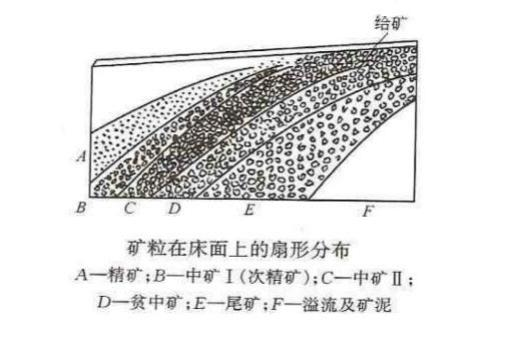 די ליכט מינעראַלס אין דער אויבערשטער שיכטע פון דער נאָרע זענען ערשטער סטריפּט אַוועק און אריבערגעפארן צו די טיילינגז זייַט צוזאמען די האָריזאָנטאַל ריכטונג פון די בעט ייבערפלאַך, און די שווער מינעראַלס זענען דיסטשאַרדזשד פון די קאַנסאַנטרייט פון די קאַנסאַנטרייט. דעריבער, די מינעראַלס אויף די גאנצע בעט ייבערפלאַך ווייַזן אַ פאָכער פאַרשפּרייטונג לויט צו פאַרשידענע ערלעכקייט און פאַרשידענע פּאַרטאַקאַל גרייס, אַזוי ווי צו באַקומען אַ פאַרשיידנקייַט פון פּראָדוקטן.